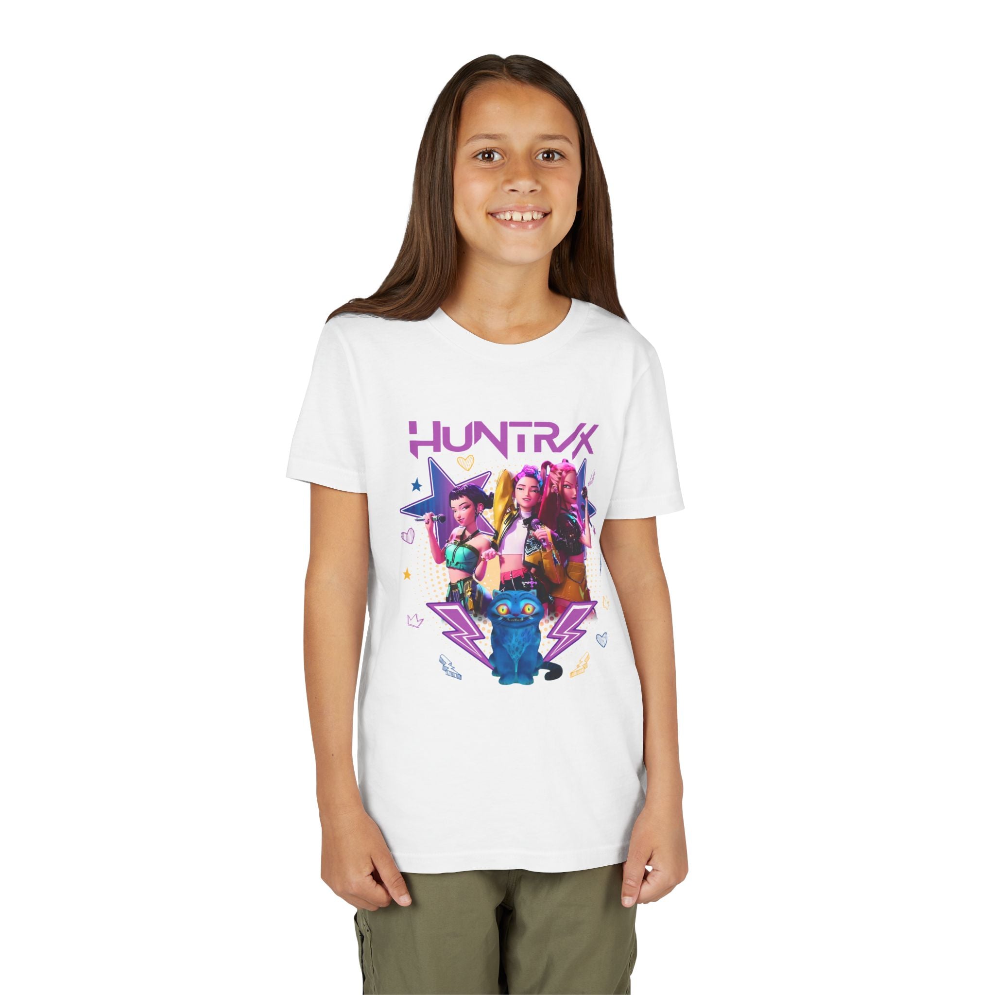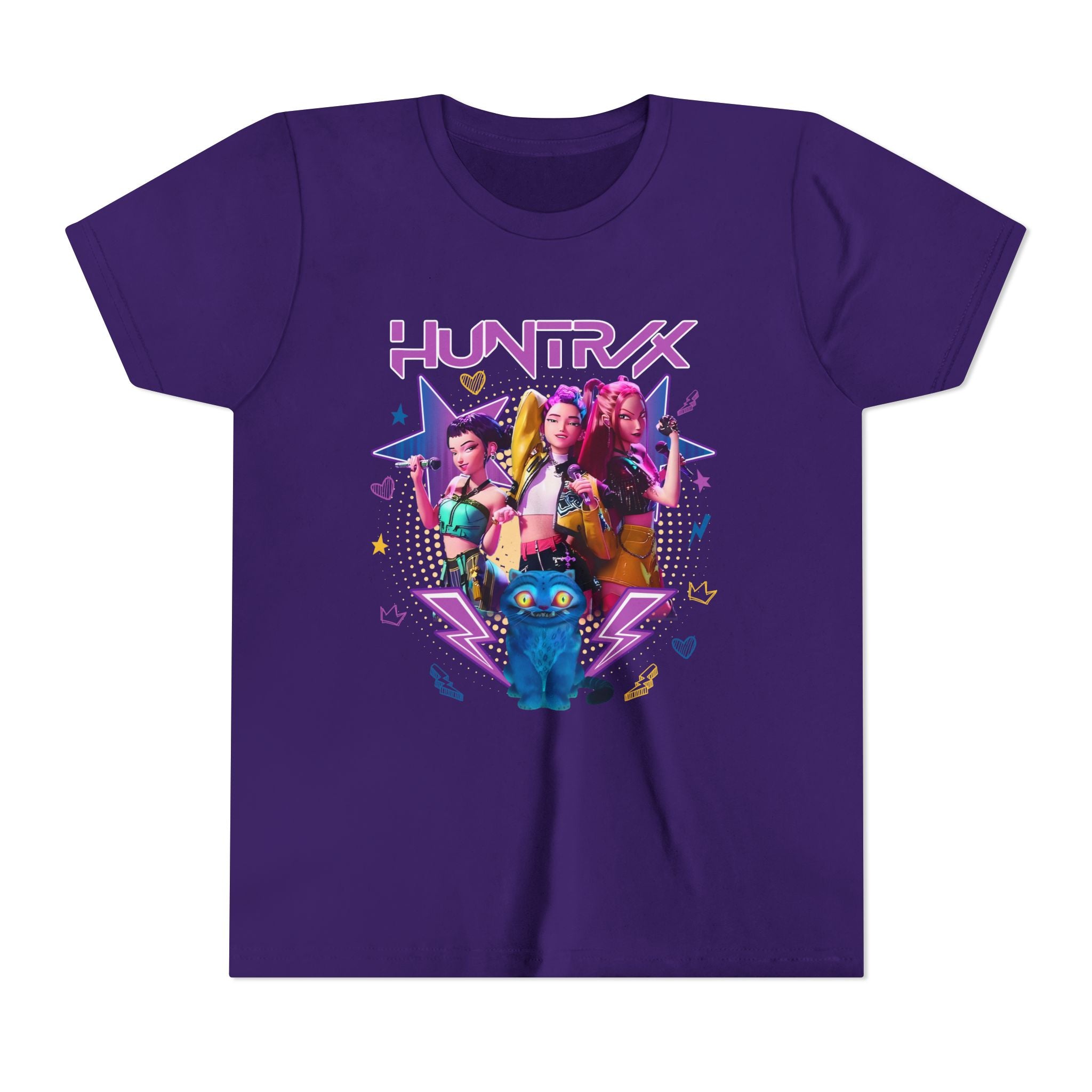 Calling all young demon slayers! This vibrant youth tee featuring the fierce Huntr/x girls—Rumi, Mira, and Zoey—is ready to turn heads and power up wardrobes. With bold graphics straight from the K-Pop Demon Hunters universe, it’s the perfect mix of attitude, color, and character.